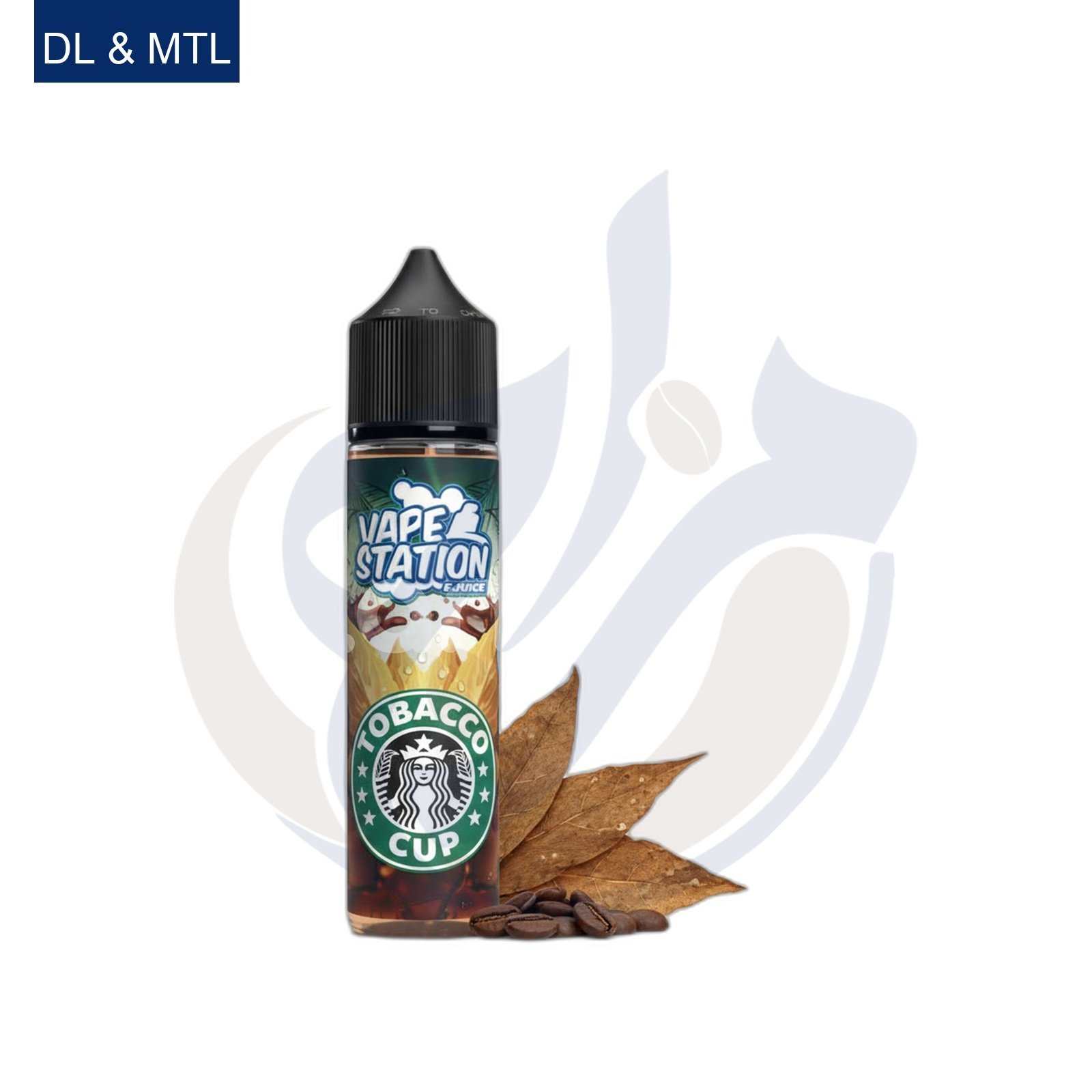 Vape Station Tobacco Cup E-Liquid (DL/MTL Freebase): Aromatic Coffee Meets Smooth Tobacco – 70/30 VG/PG, 60ML Bottle (3MG to 12MG) | El-mazaj.com
